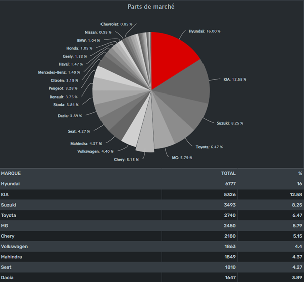 Chery a particulièrement brillé sur le segment D-SUV, avec 103 unités de Tiggo 8 et Tiggo 8 Pro vendues, lui conférant une position de leader bien méritée et une part de marché de 15,73%. Cette performance exceptionnelle s’explique par le design moderne et robuste de ces modèles, ainsi que par la fiabilité de leurs motorisations et leurs équipements technologiques très avancés.