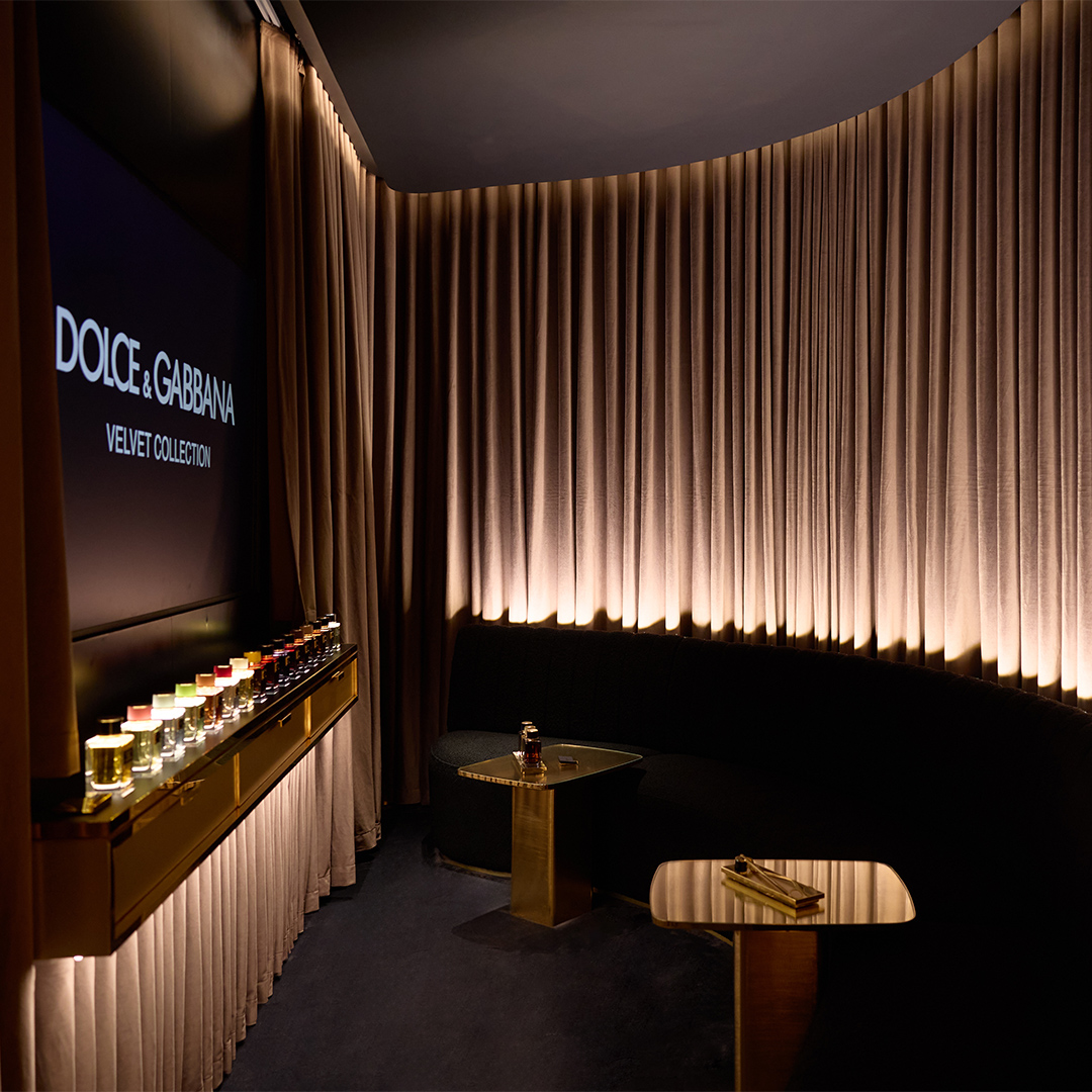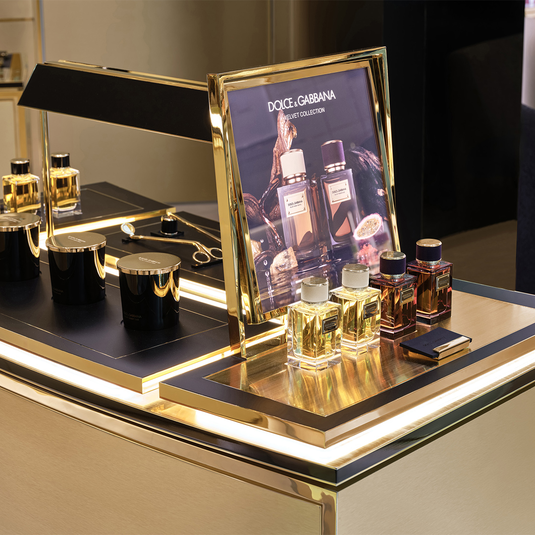 Les clients peuvent découvrir les fragrances emblématiques de la Maison, parmi lesquelles la Velvet Collection, véritable hommage aux souvenirs olfactifs des créateurs et à leur attachement à l’Italie.
