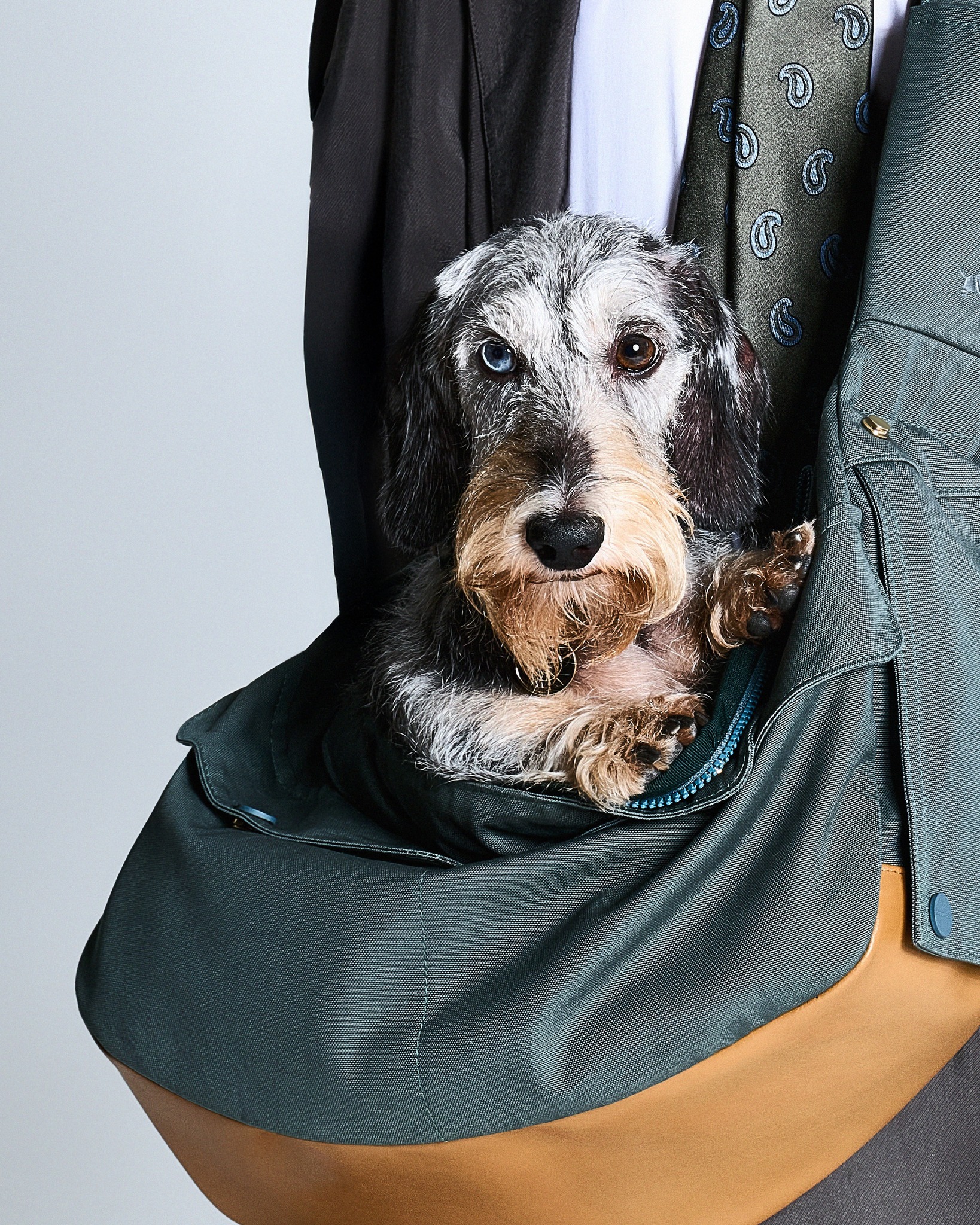 Le nouveau set, fraîchement intégré à la collection, vient enrichir cette offre déjà complète. Décliné dans une subtile teinte vert pétrole associée à du cuir naturel, il comprend un imperméable, un sac de transport, un collier, une laisse, un harnais, un porte-AirTag® Apple et un porte-balle. Chaque élément a été pensé pour accompagner la vie urbaine, entre protection, praticité et design.
