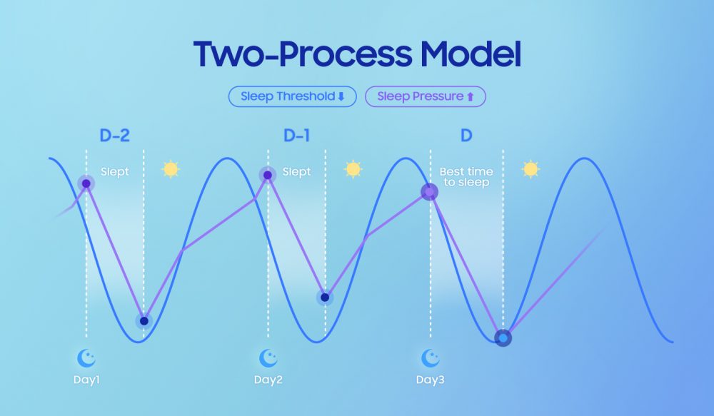- Conseils pour le coucher : S’appuyant sur la science du modèle à deux processus de régulation du sommeil, la gamme Galaxy Watch8 suit votre rythme circadien (horloge biologique interne) et votre pression de sommeil (quantité de sommeil dont votre corps a besoin), sur trois jours. Elle interprète ensuite ces données sous forme d’équation différentielle afin de calculer l’heure de coucher optimale pour se réveiller en pleine forme. L’algorithme utilise les changements de seuil de sommeil et les besoins individuels en sommeil tout au long de la journée pour fournir des conseils personnalisés. Développée par le KAIST et testée cliniquement au Samsung Medical Center, cette fonction permet de mettre en place des habitudes de sommeil plus saines qui conduisent à un sommeil plus profond, moins interrompu et à des matins plus énergiques.