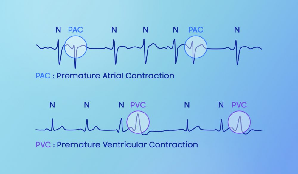 · Détection des battements ectopiques : L’électrocardiogramme (ECG) amélioré de la Galaxy Watch8 permet de mieux capturer les battements ectopiques, ces battements cardiaques prématurés qui passent souvent inaperçus lors des examens de routine, car ils se produisent fréquemment sans symptômes apparents. Il est bien connu que des battements ectopiques fréquents peuvent être considérés comme cliniquement significatifs et peuvent conduire à des arythmies qui augmentent le risque d’accident vasculaire cérébral et de défaillance cardiaque. La gamme Galaxy Watch8 offre une mesure ECG améliorée avec la capacité de différencier les cas de battements ectopiques fréquents, ce qui permet d’obtenir des informations plus précoces pour soutenir les soins préventifs.