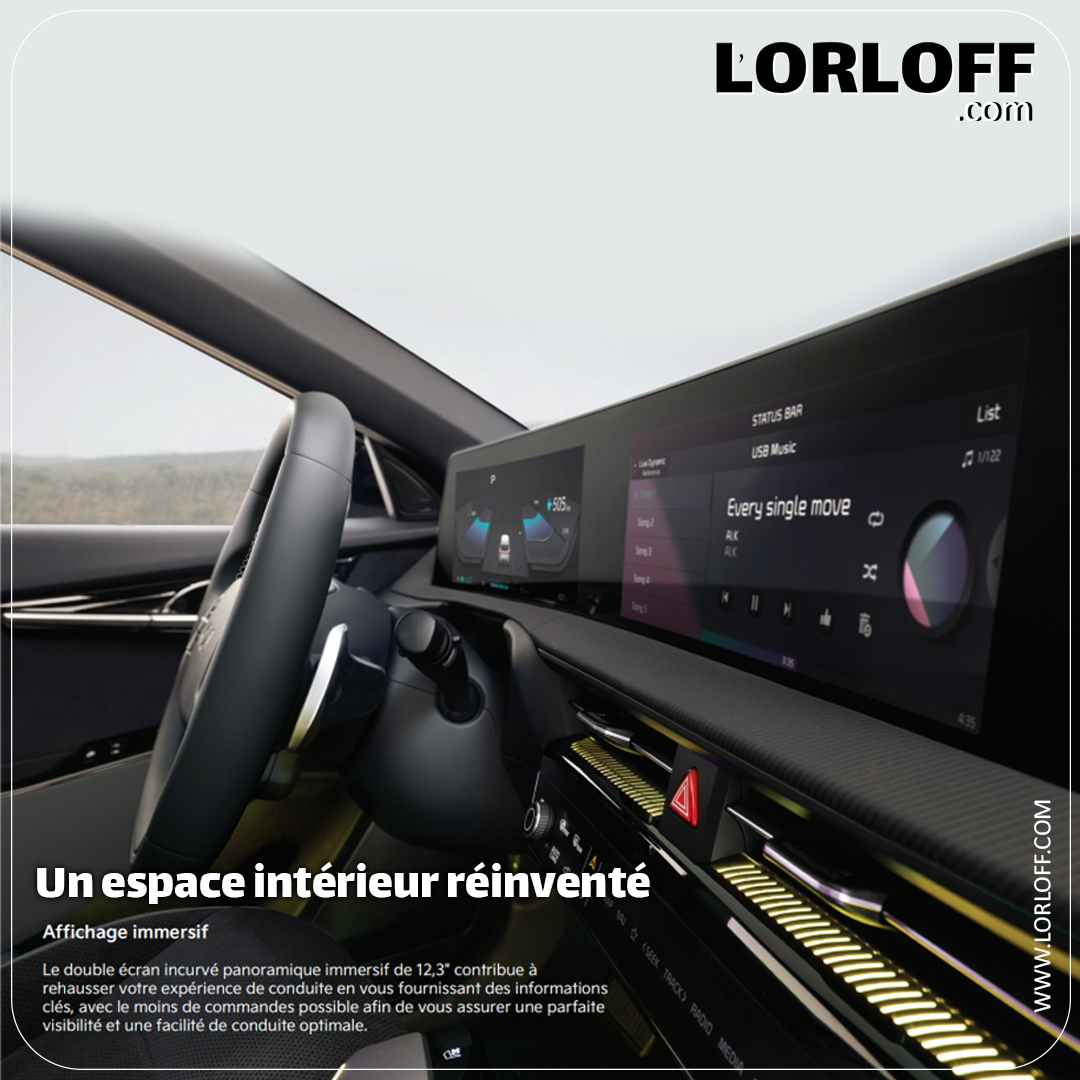 Le double écran incurvé panoramique immersif de 12,3″ contribue à rehausser votre expérience de conduite en vous fournissant des informations clés, avec le moins de commandes possible afin de vous assurer une parfaite visibilité et une facilité de conduite optimale.
