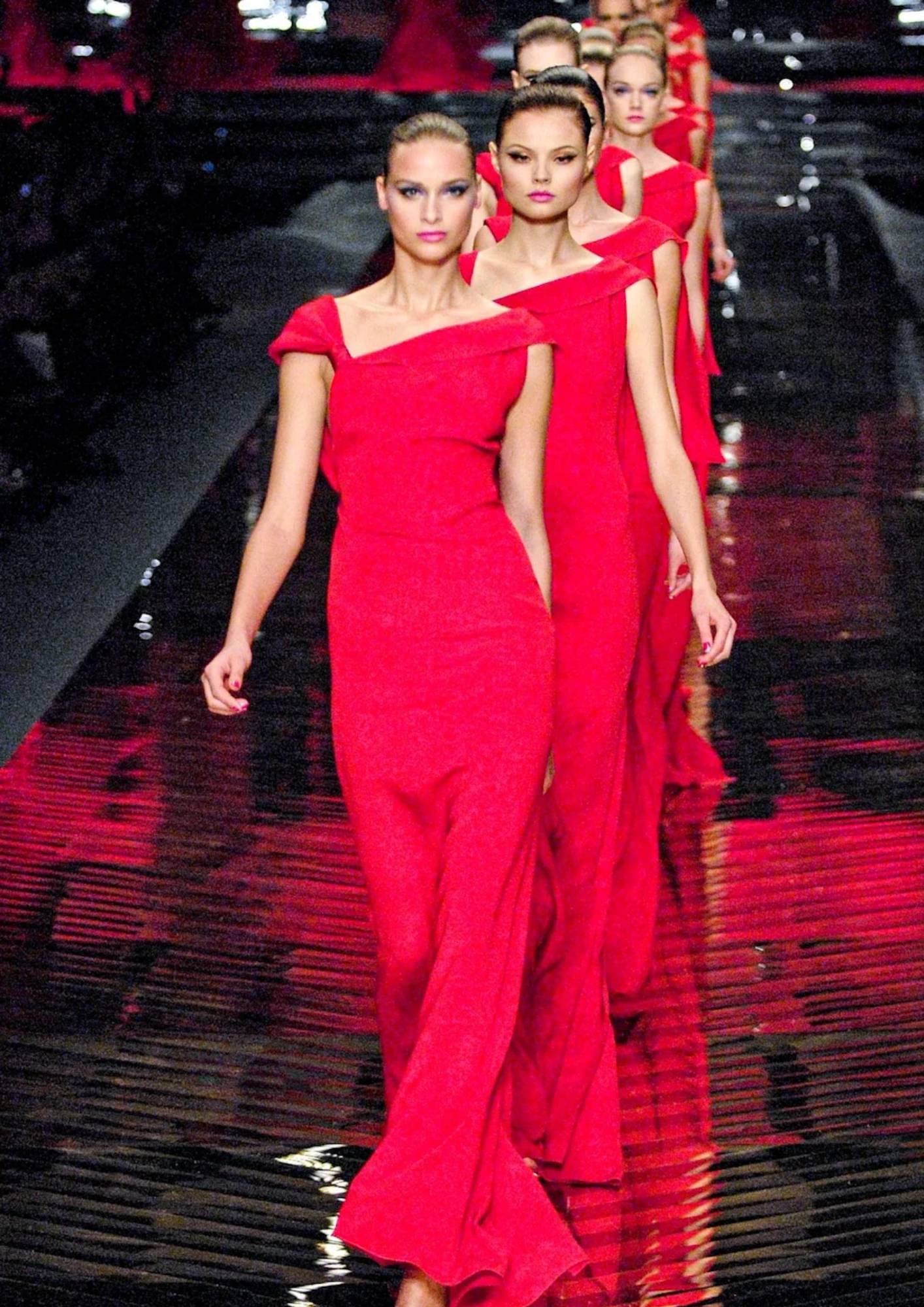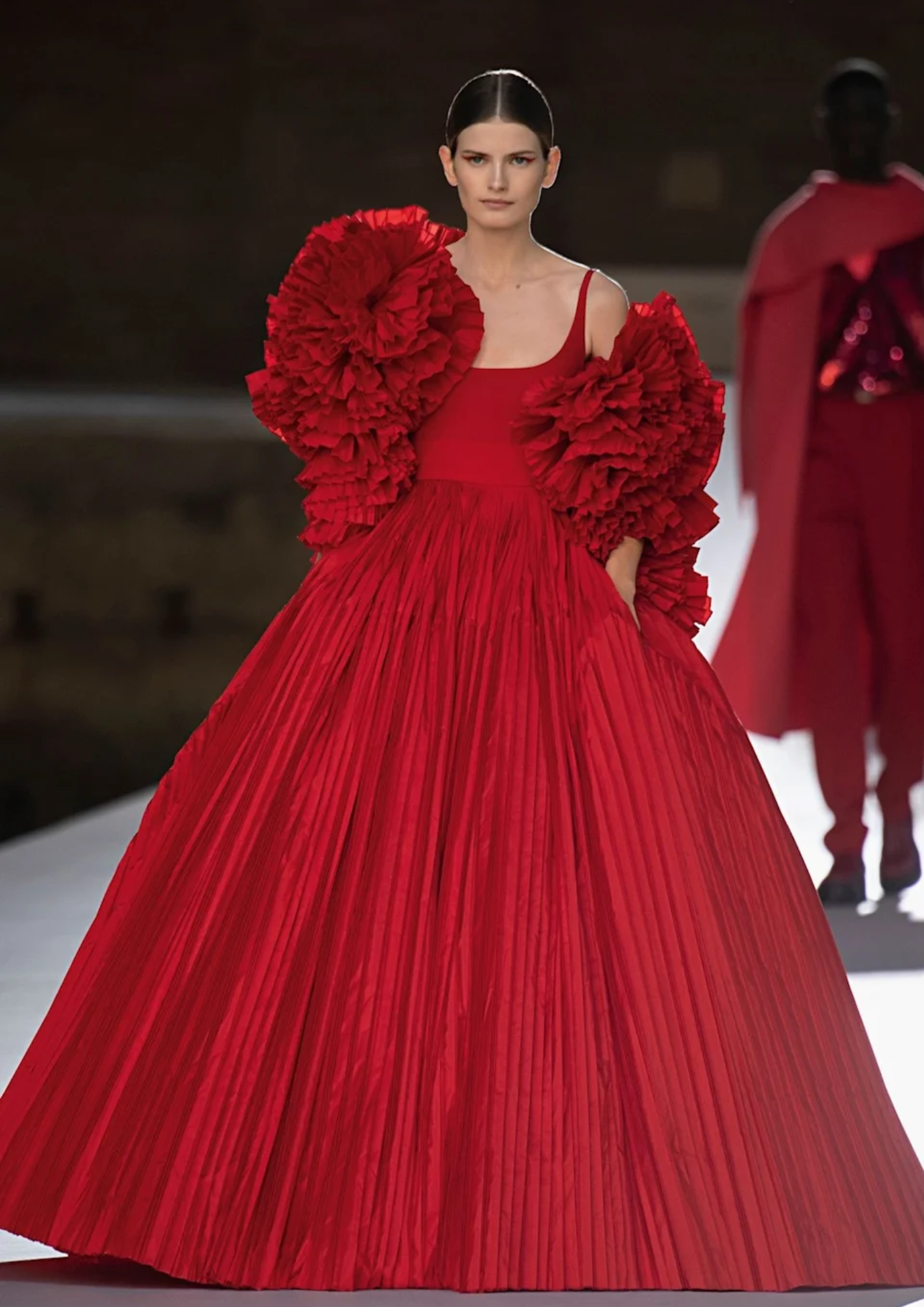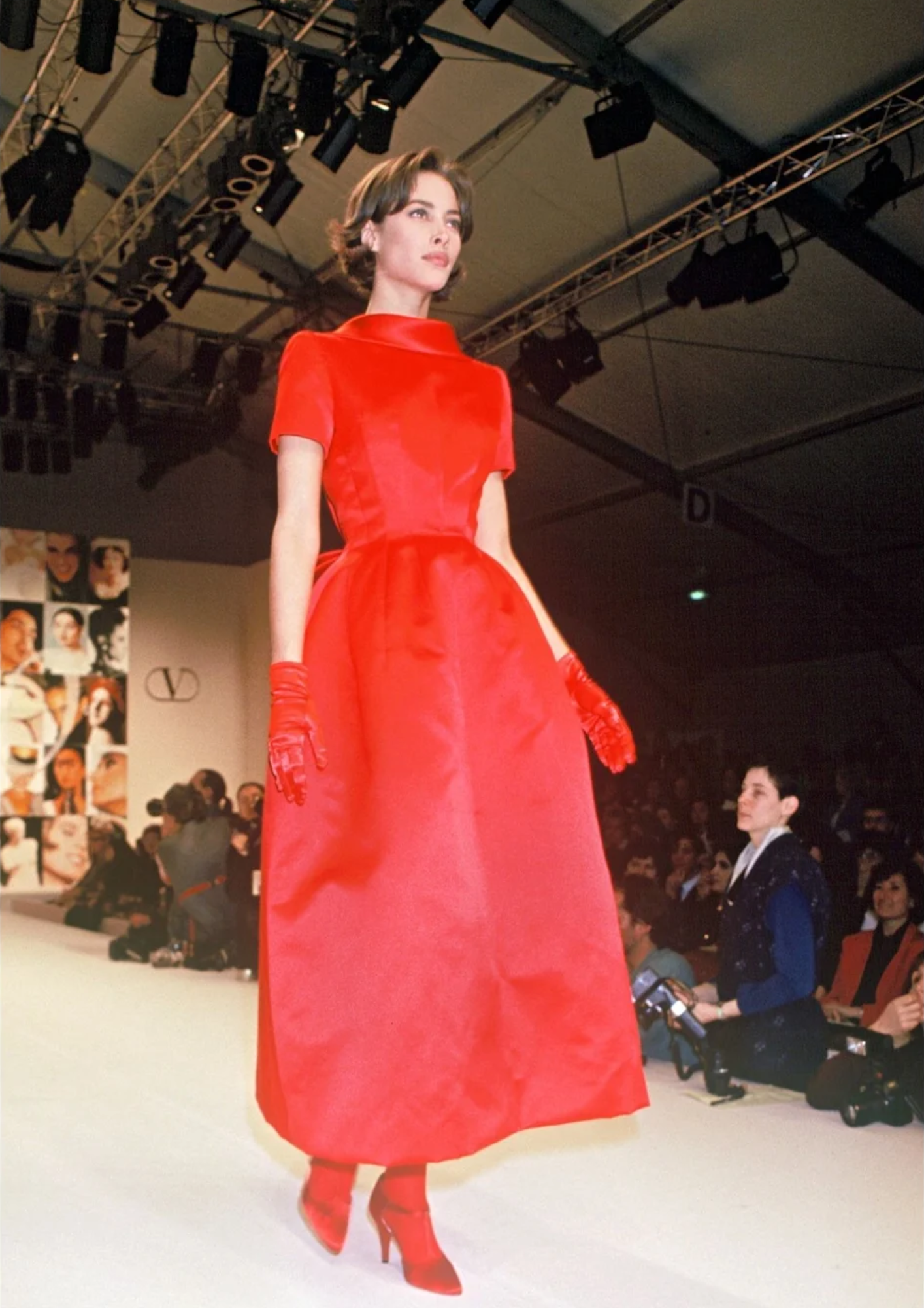 Depuis 1959, chaque collection Valentino intègre au moins une robe rouge. Du rouge passion au rouge feu, des silhouettes de cocktail « Fiesta » aux robes de gala en mousseline ou en satin, le rouge s’impose comme un manifeste, sans cesse réinterprété au fil des décennies, notamment sous la direction artistique de Pierpaolo Piccioli, qui en a magnifié la dimension émotionnelle et contemporaine.