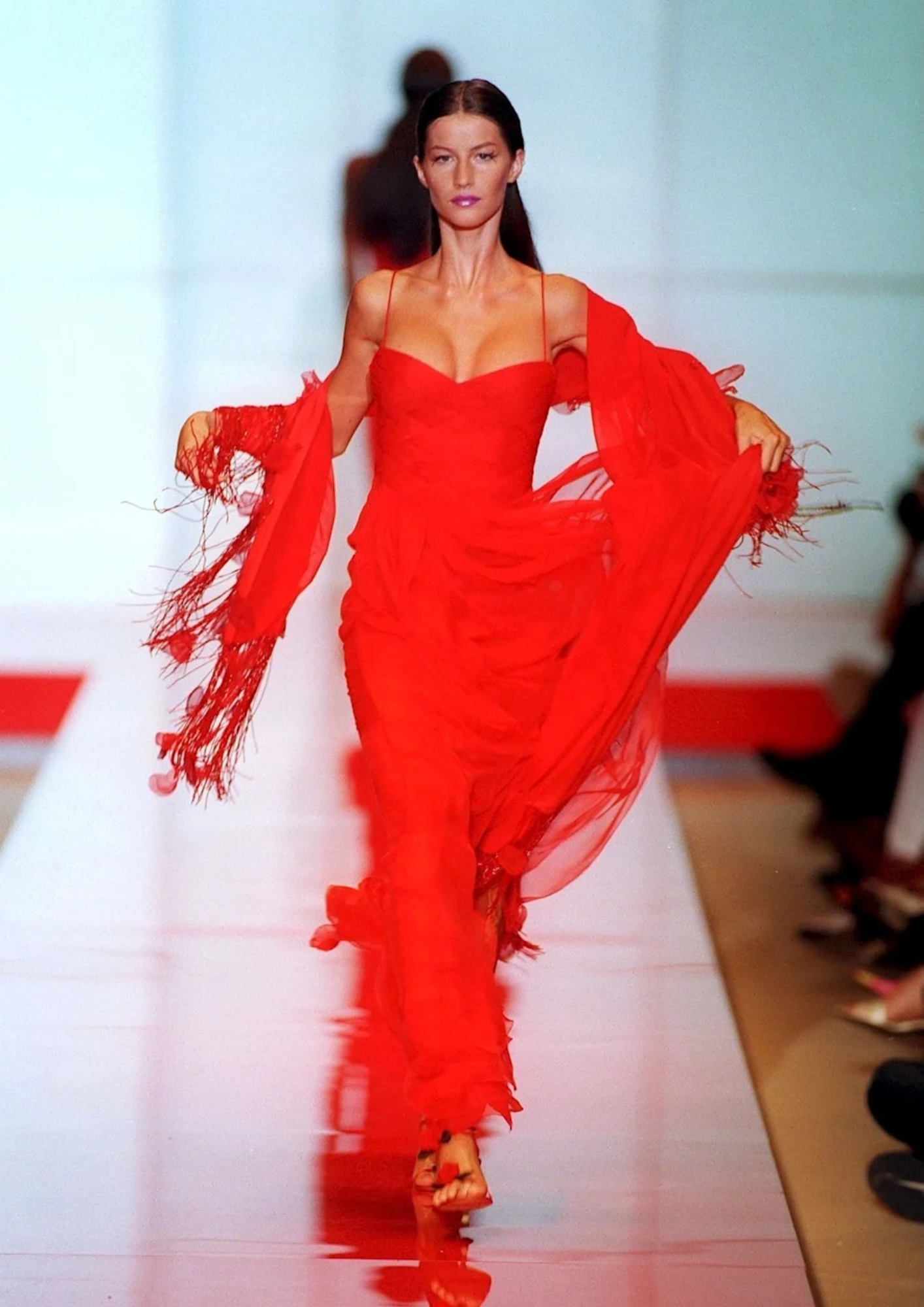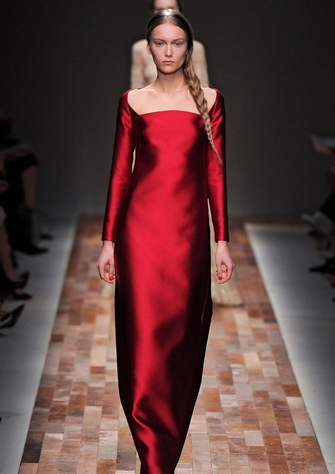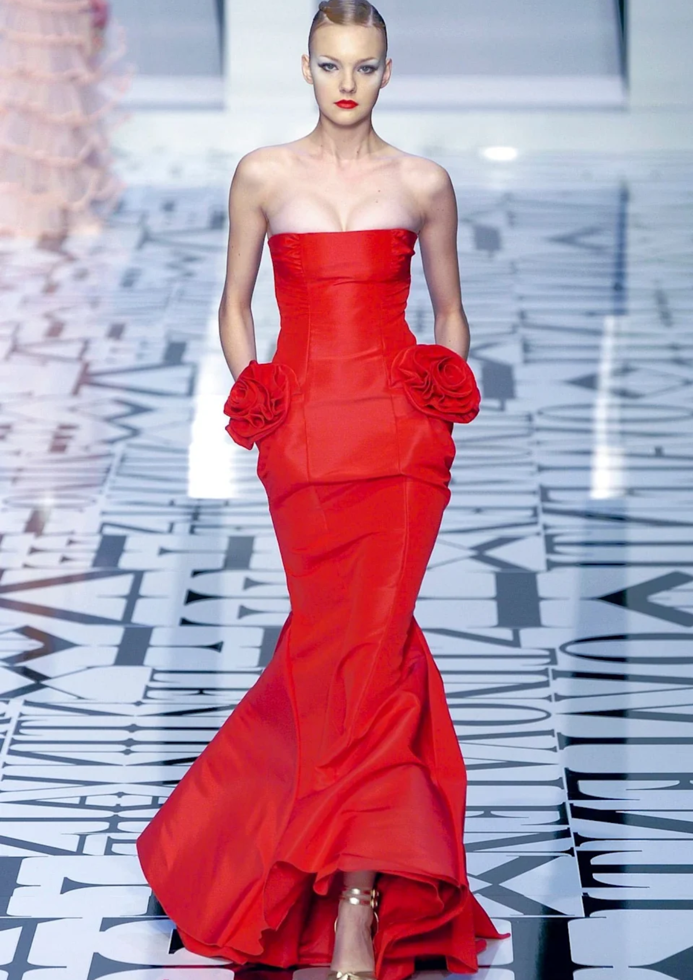 Depuis 1959, chaque collection Valentino intègre au moins une robe rouge. Du rouge passion au rouge feu, des silhouettes de cocktail « Fiesta » aux robes de gala en mousseline ou en satin, le rouge s’impose comme un manifeste, sans cesse réinterprété au fil des décennies, notamment sous la direction artistique de Pierpaolo Piccioli, qui en a magnifié la dimension émotionnelle et contemporaine.