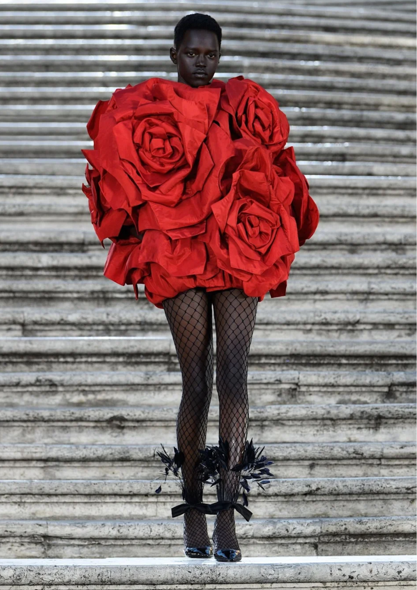 L’histoire du Rouge Valentino débute lors des années de formation du couturier, à l’Opéra de Barcelone. Un souvenir précis, presque cinématographique, marque alors son esprit : une femme aux cheveux gris, vêtue d’une robe en velours rouge. Ce choc visuel, ce « flash chromatique », ne le quittera jamais. Il deviendra le fil conducteur de toute sa carrière, l’âme de ses créations et l’icône visuelle de sa maison.