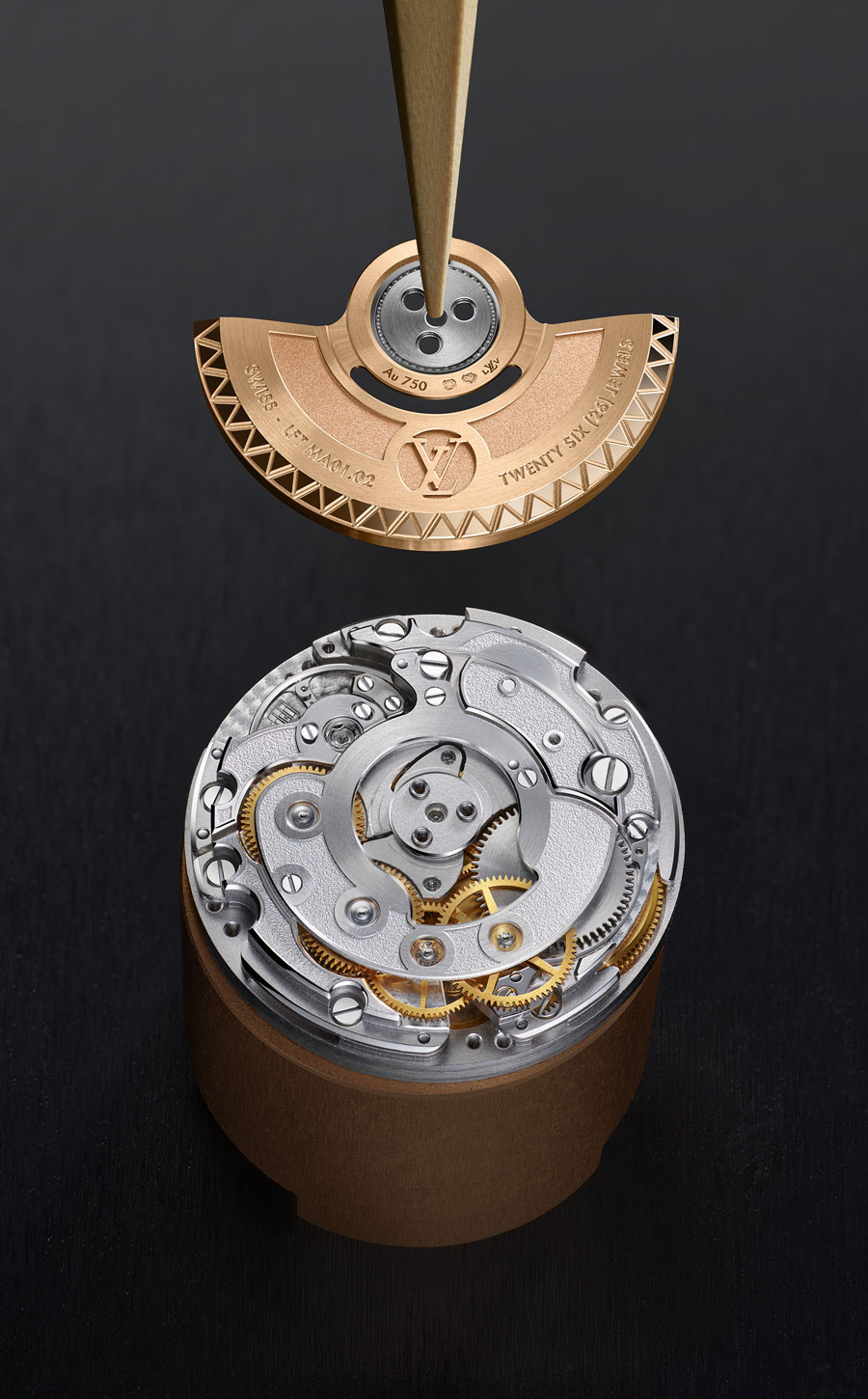 Au cœur de cette renaissance bat le calibre automatique LFTMA01.02, développé par La Fabrique du Temps Louis Vuitton, laboratoire d’excellence où tradition mécanique et innovation technologique dialoguent sans cesse. Le rotor en or rose, les ponts sablés et la platine perlée traduisent la main invisible de l’artisan : celle qui transforme la précision en émotion.