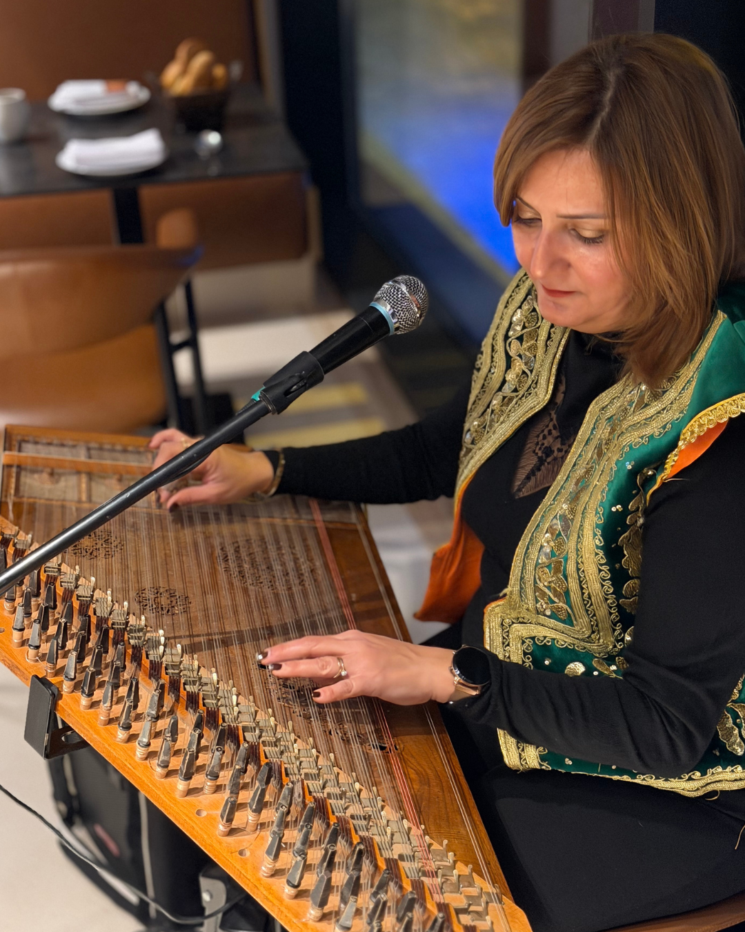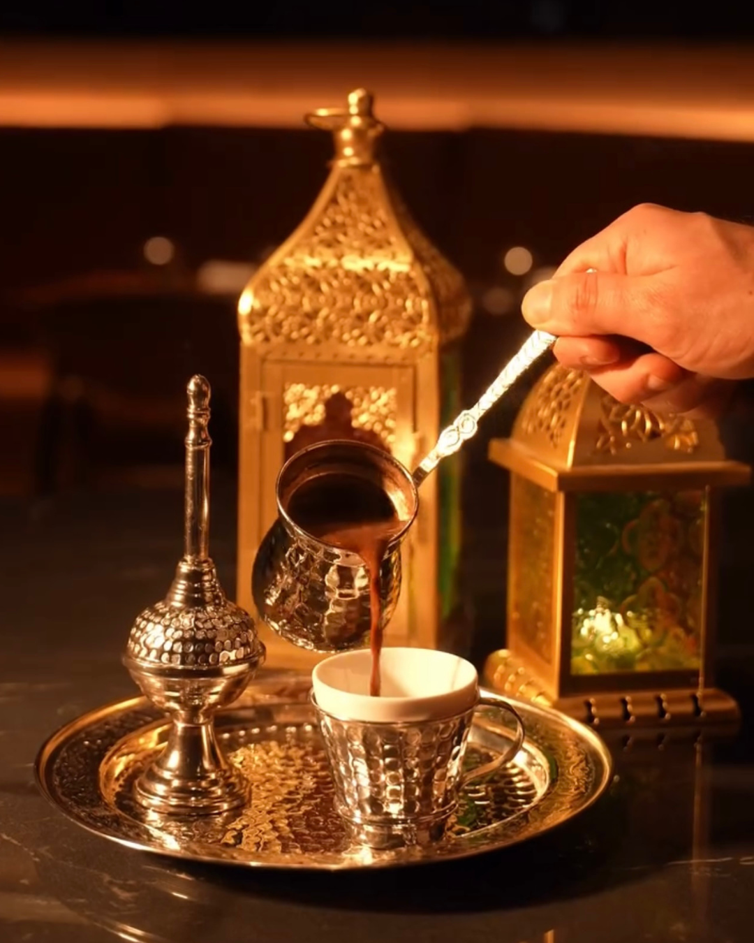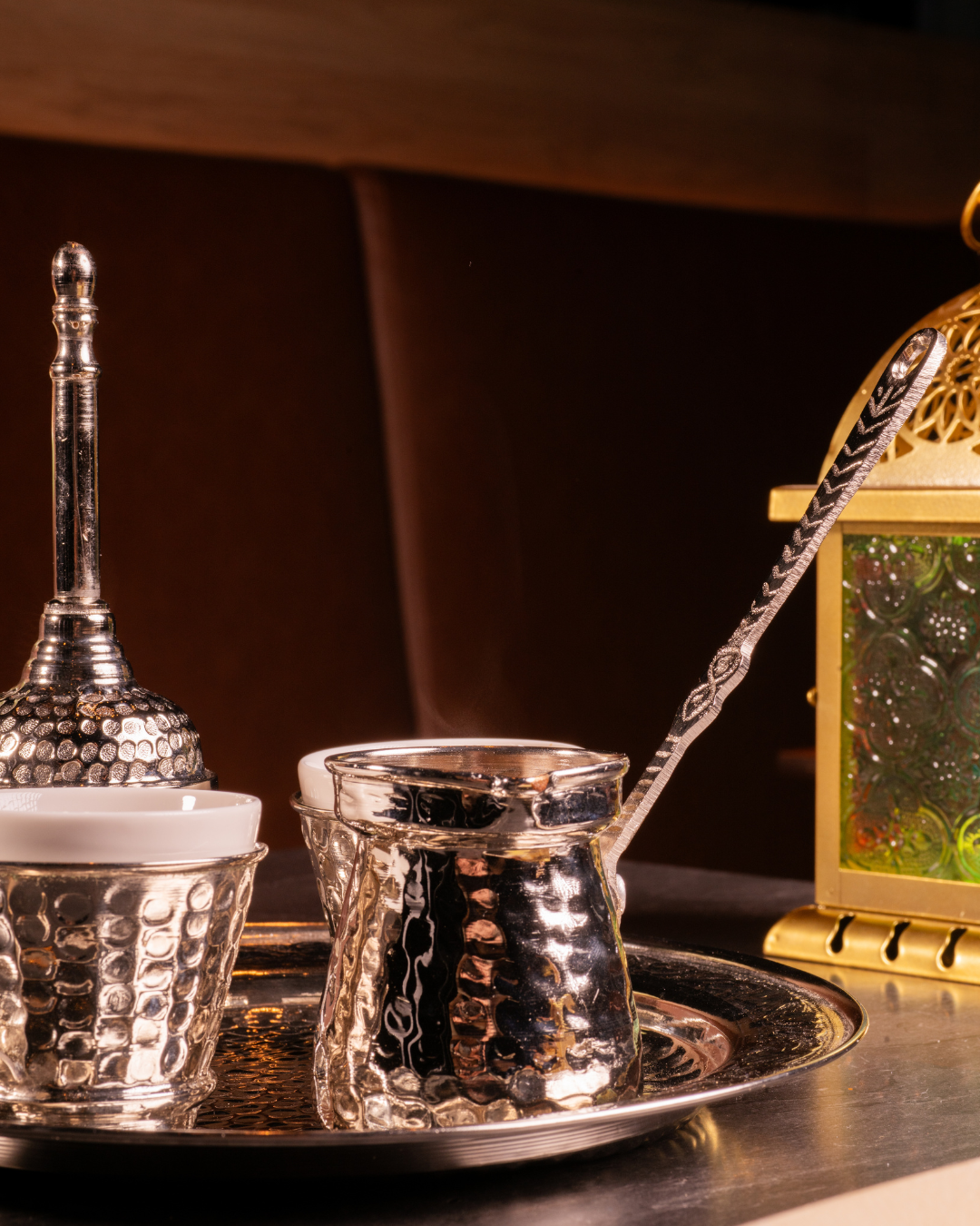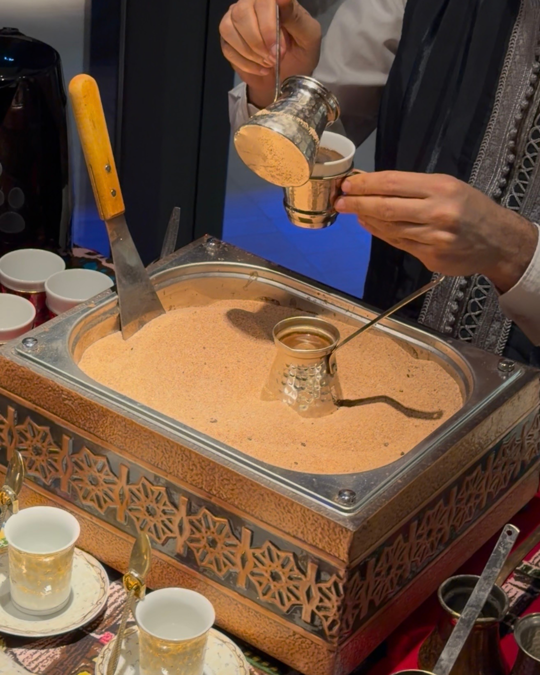 L’ambiance musicale au son délicat du kanoun accompagne la soirée avec subtilité, créant une atmosphère feutrée propice aux échanges et aux retrouvailles. La soirée se prolonge autour d’un café turc préparé sur sable, véritable rituel, dont l’arôme intense invite à ralentir le temps. Une sélection raffinée de douceurs sucrées vient parachever cette expérience gourmande.