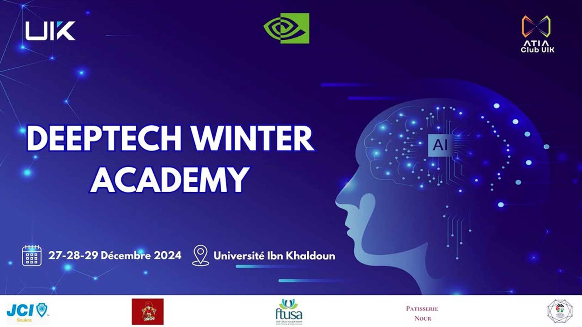 En partenariat avec l’Association Tunisienne d’Intelligence Artificielle, l’UIK a organisé une école d’hiver consacrée aux applications de l’IA en business, en RSE et en industrie. Les étudiants ont suivi en parallèle une formation certifiante NVIDIA en Deep Learning, renforçant leur maîtrise des outils de pointe.