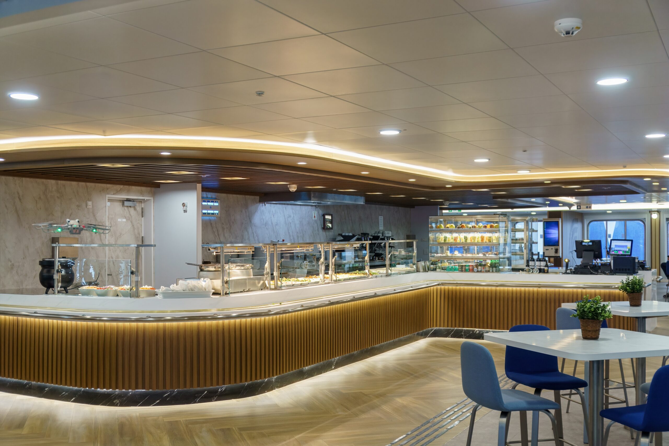• Espace restauration innovant : du charme panoramique du Seaview Lounge, idéal pour les moments de détente, au Market Place, qui propose des plats fraîchement préparés et des spectacles de cuisine pour une excellente expérience culinaire.