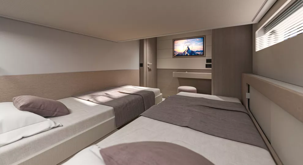 Cette harmonie n’est pas un hasard : le yacht s’inspire des principes japonais du Kanso (la simplicité qui apaise) et du Yugen (la beauté subtile). Résultat : des espaces épurés, lumineux, parfaitement proportionnés, qui transforment chaque sortie en mer en moment suspendu.
